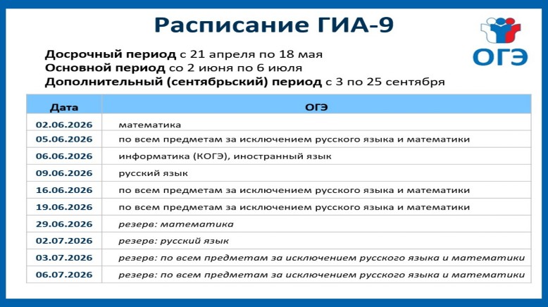 Расписание проведения ОГЭ и ГВЭ-9 в 2026 году